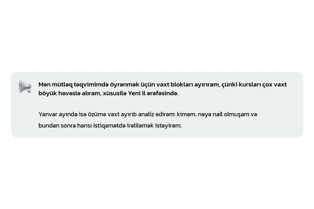 Aydın zaman planı və deadline-lar öyrənməni sistemli saxlayır.