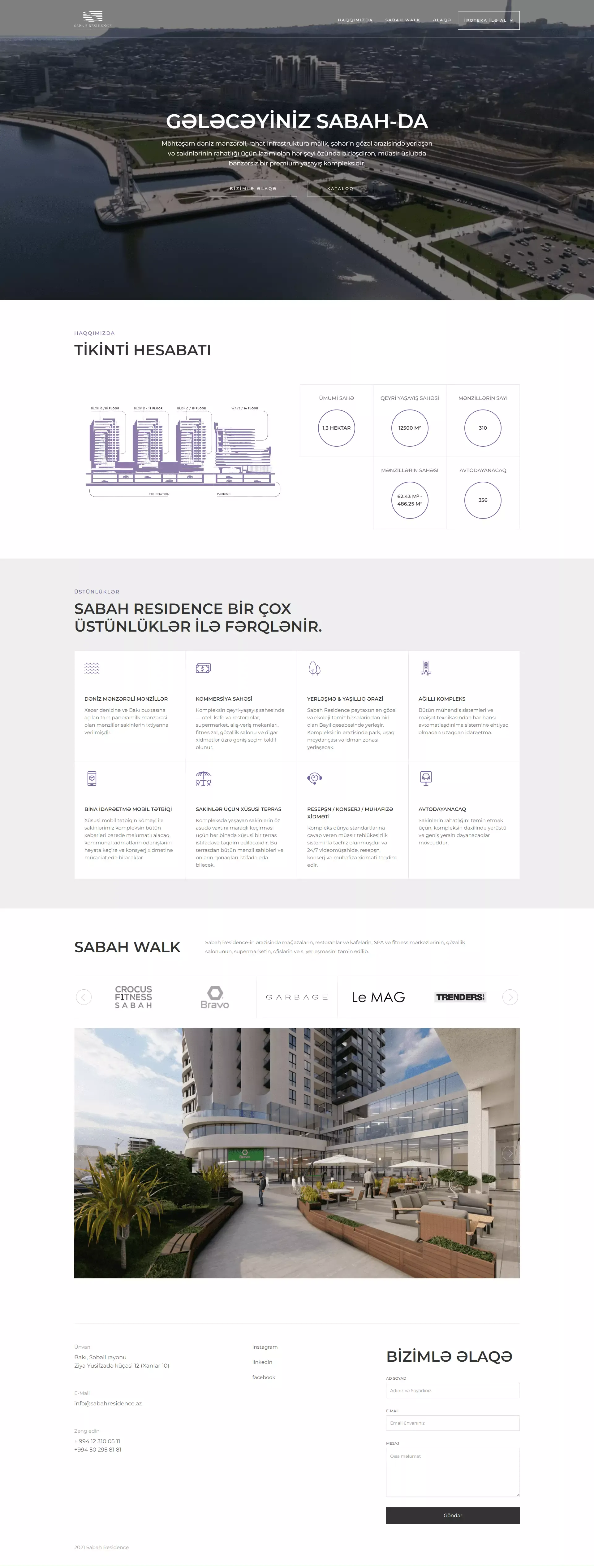 Trenders Team tərəfindən Sabah Residence yaşayış kompleksi üçün yaradılan veb saytı təqdim edirik. Sabah Residence — həm premium və müasir bir yaşayış kompleksi, həm də “intellektual” binadır. Veb saytın prototipini hazırlamağa başlamazdan əvvəl layihənin auditoriyasını təhlil etdik və ona uyğun dizayna başladıq. Kontentin yaradılması zamanı bu kompleksdə həyatın üstünlüklərinə və tikinti texnologiyasına xüsusi diqqət yetirdik.